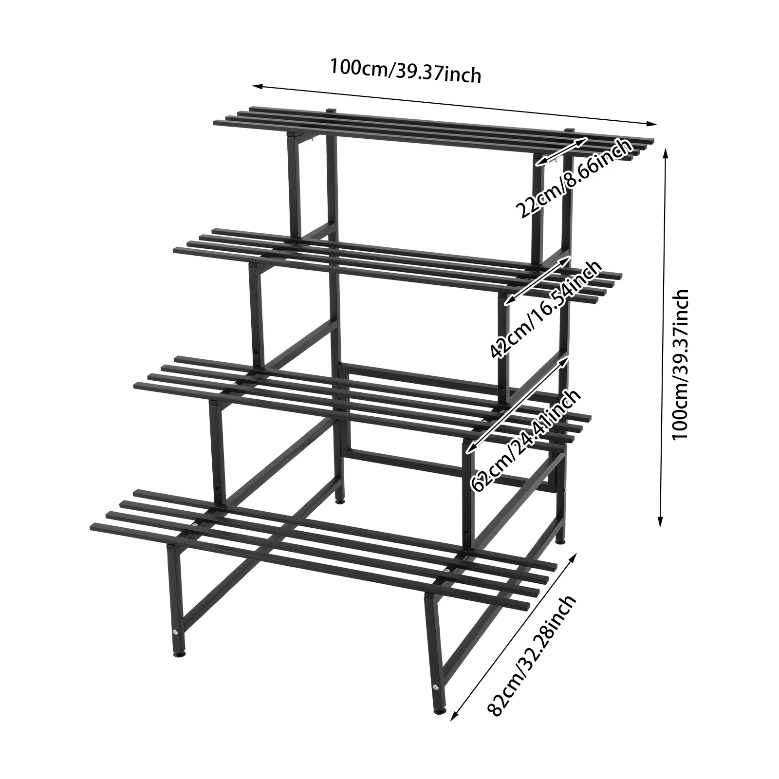 Spacious Storage Space: The 4 tiers provide plenty of space for your potted plants so that your flowers, greenery, or other plants can be placed in an organized manner.